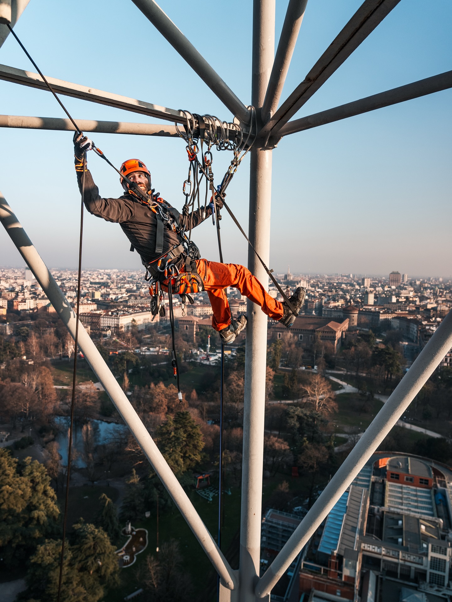 Đai leo tháp được thiết kế dành cho những công việc phải leo các kết cấu cao như tháp viễn thông, tuabin gió hoặc khung thép cao tầng. Loại đai này thường có D-ring phía trước và phần hỗ trợ lưng tăng cường, giúp người sử dụng thoải mái hơn khi leo hoặc làm việc trong thời gian dài.