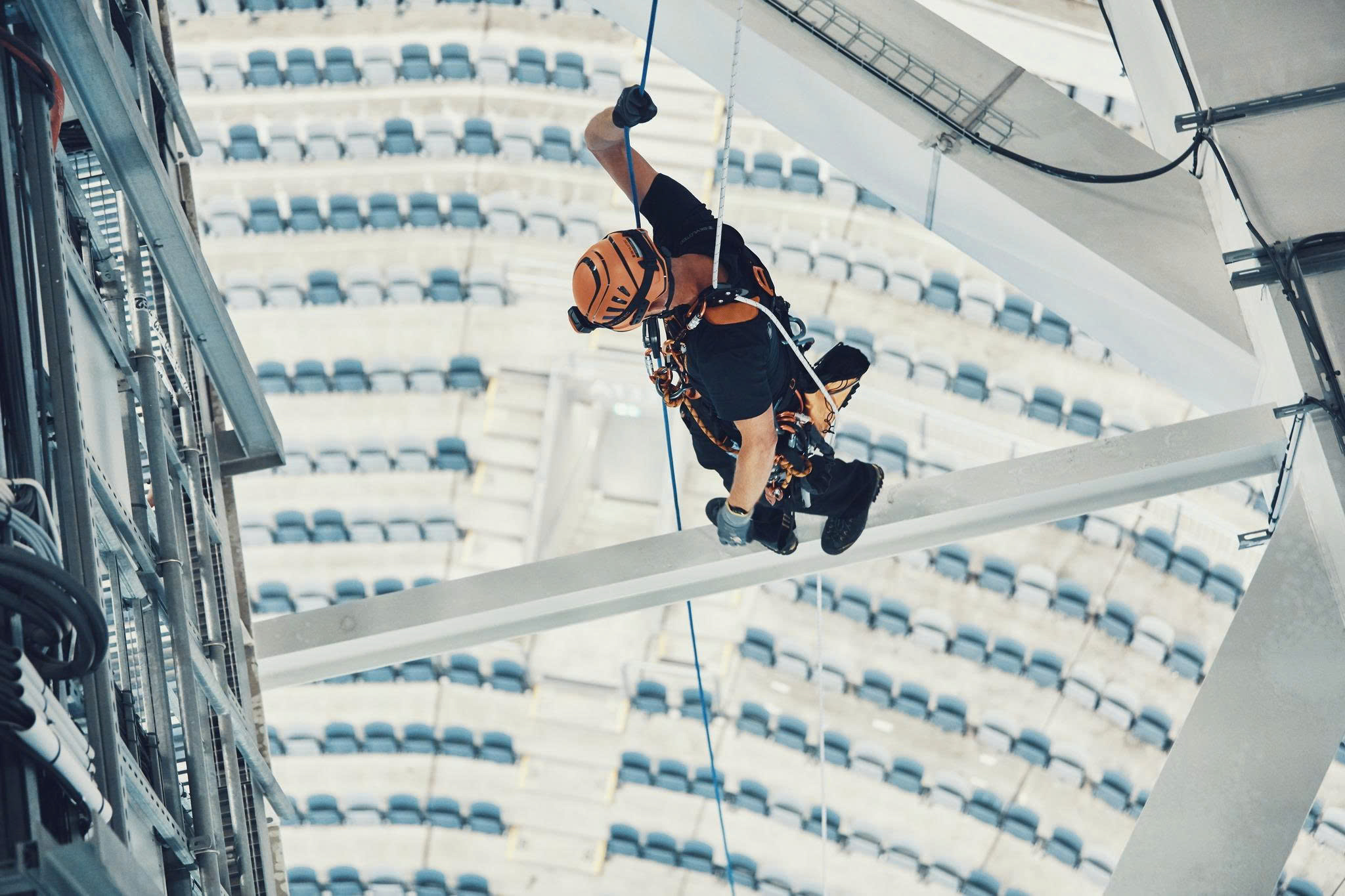 - Di chuyển liên tục trên cao → Dây đai 2 móc (luôn duy trì ít nhất 1 điểm neo)
