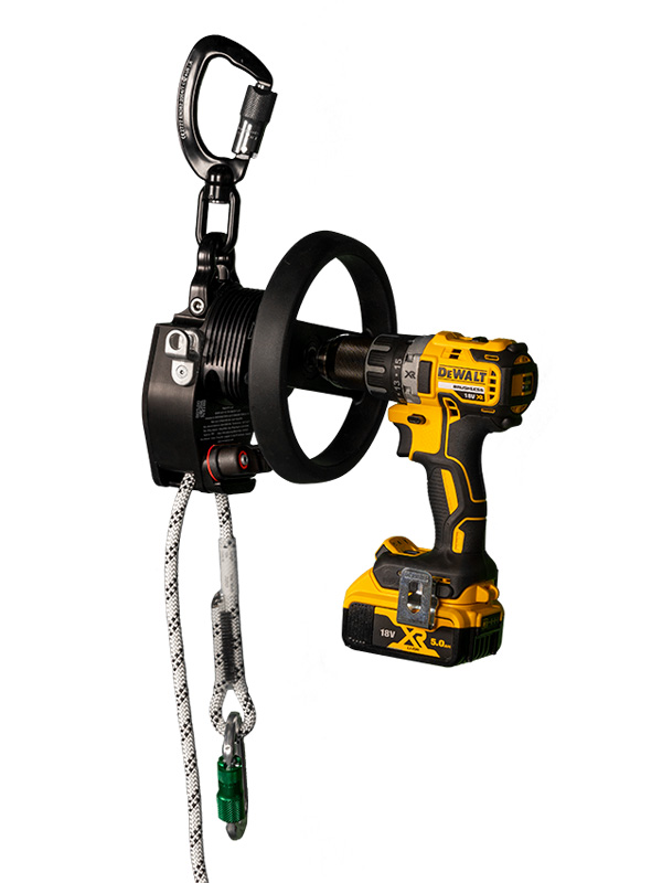 Giao diện kết nối dụng cụ điện đa năng cho phép nâng hạ tải nặng lên đến 255 m. Khớp xoay gắn phía trên giúp định vị tối ưu, ngay cả trong không gian hẹp hay khu vực hạn chế.