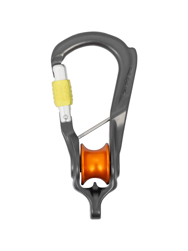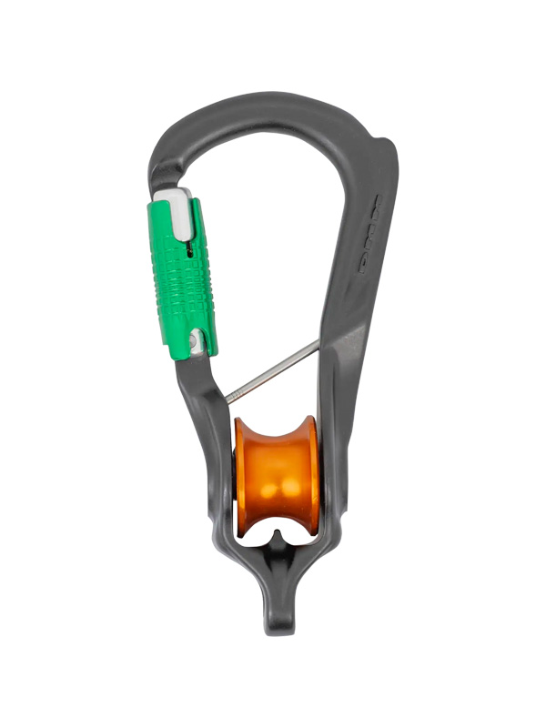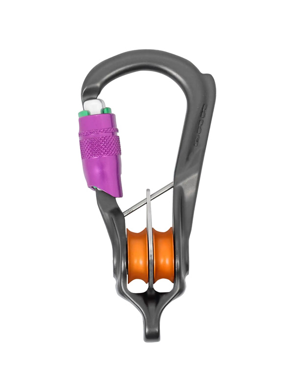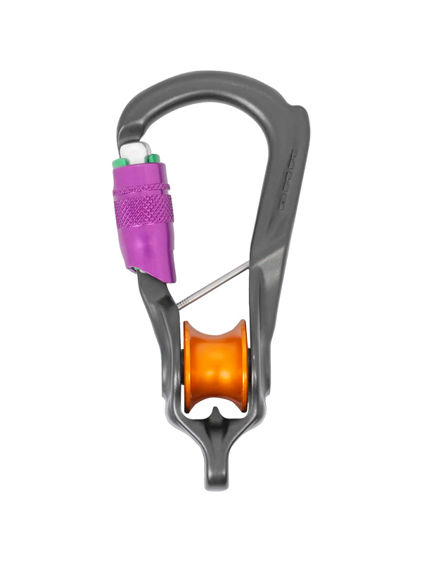 Một móc nối tích hợp bánh ròng rọc. Sản phẩm được trang bị bánh ròng rọc dùng ổ bi con lăn hiệu suất cao, thanh chặn captive có ren tháo rời, và becket chịu lực toàn phần, thân thiện với dây.