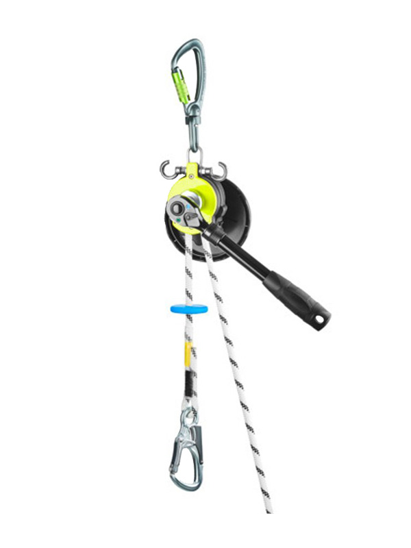 Safe Descent Pro là thiết bị hạ và cứu hộ đa năng, được tích hợp chức năng tời nâng (winch). Thiết bị có thể vận hành bằng điện (sử dụng máy khoan pin) hoặc bằng tay (cóc hãm/ratchet, tay quay). Chức năng tời nâng với cơ cấu chống tụt được cấp bằng sáng chế cho phép nâng người hoặc giảm tải cho hệ thống an toàn, tạo điều kiện cho quá trình hạ người an toàn sau đó.